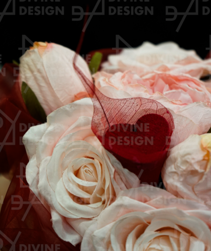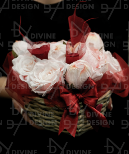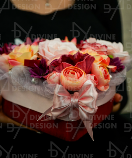Všechny rostliny v tomto truhlíku jsou pečlivě vybrané umělé květiny, což zajišťuje jejich trvalou krásu  a bezúdržbový vzhled. Už žádné starosti s péčí o živé květiny – tento originální dekor od Divine Design vám přinese přírodní atmosféru bez práce. Truhlík je ozdoben elegantní saténovou mašlí, která dodává aranžmá slavnostní a sofistikovaný nádech.