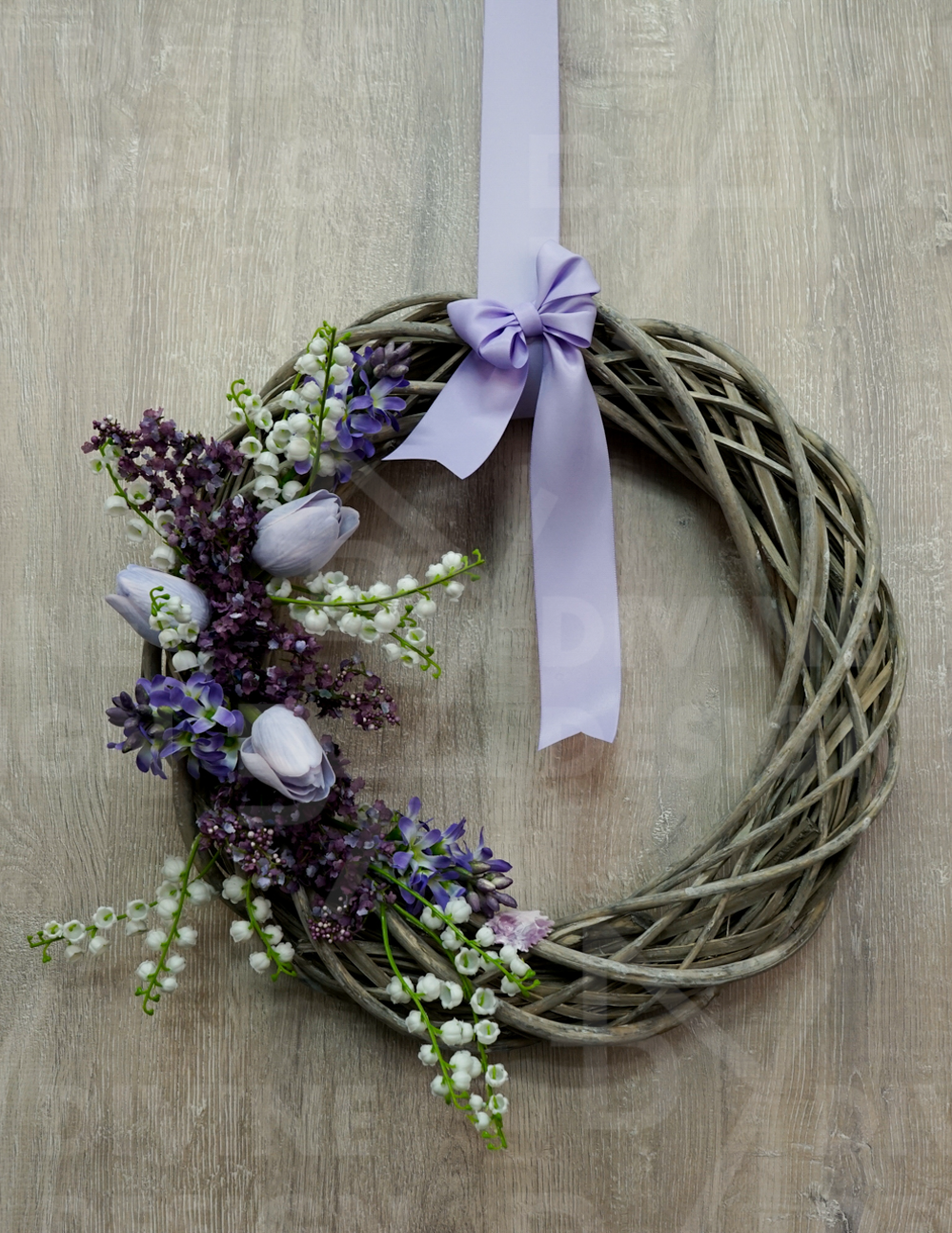 Design jarního věnce na dveře – světlé tulipány je doplněn elegantní mašlí, která věncům dodává šarm, jemnost a dokonalý vzhled. Tento jarní věnec na dveře je perfektní pro ozdobení vchodových dveří nebo jako sváteční dekorace, která přinese do vašeho domova svěžest a pohodu.