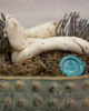 Keramický květináč antik, přírodní bělené dřevo, květy, tilancie.