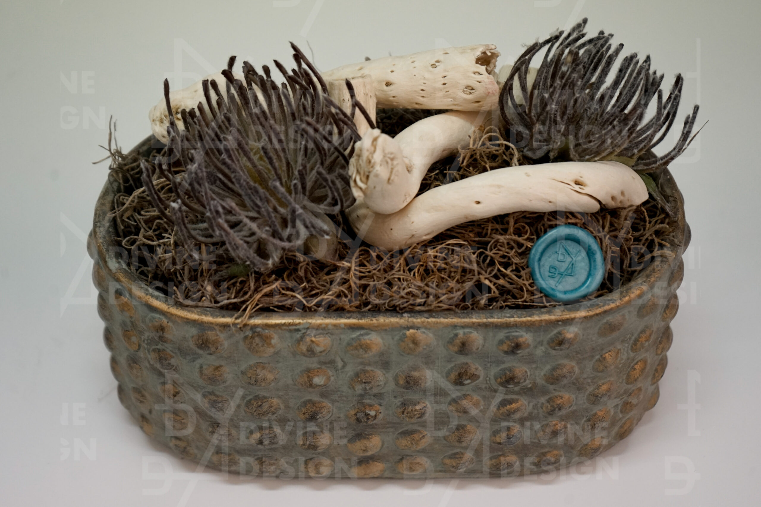 Květinová dekorace na stůl – antik je tvořena z pečlivě vybraných umělých květin, které jsou zvoleny tak, aby nabývaly realističtějšího vzhledu a přinášely do vašeho prostoru svěžest. Základem této dekorace je přírodní bělené dřevo, jež vytváří krásný kontrast s bohatými květinovými odstíny, a zároveň působí organicky a útulně.