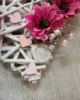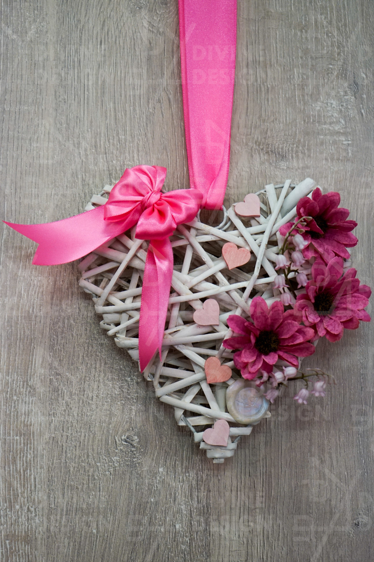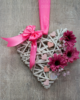 Celý vzhled završuje elegantní saténová mašle, která dodává dekoraci nádech sofistikovanosti, jemnosti a romance. Všechny komponenty tohoto romantického srdce – růžové květy jsou zhotoveny z umělých materiálů, takže si můžete užívat jejich kráse po dlouhou dobu bez nutnosti údržby.