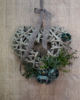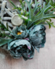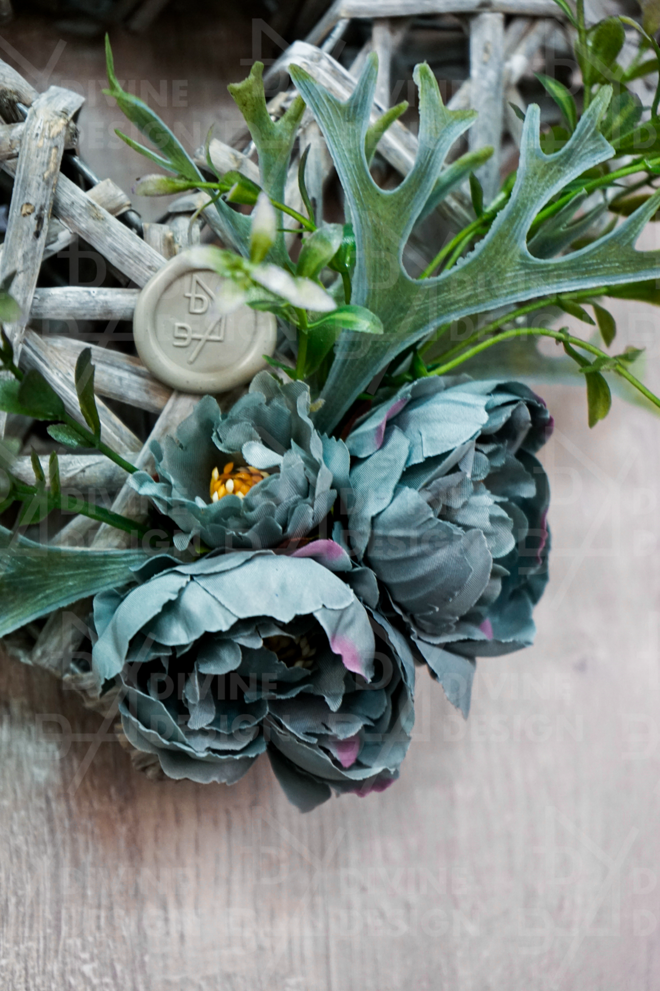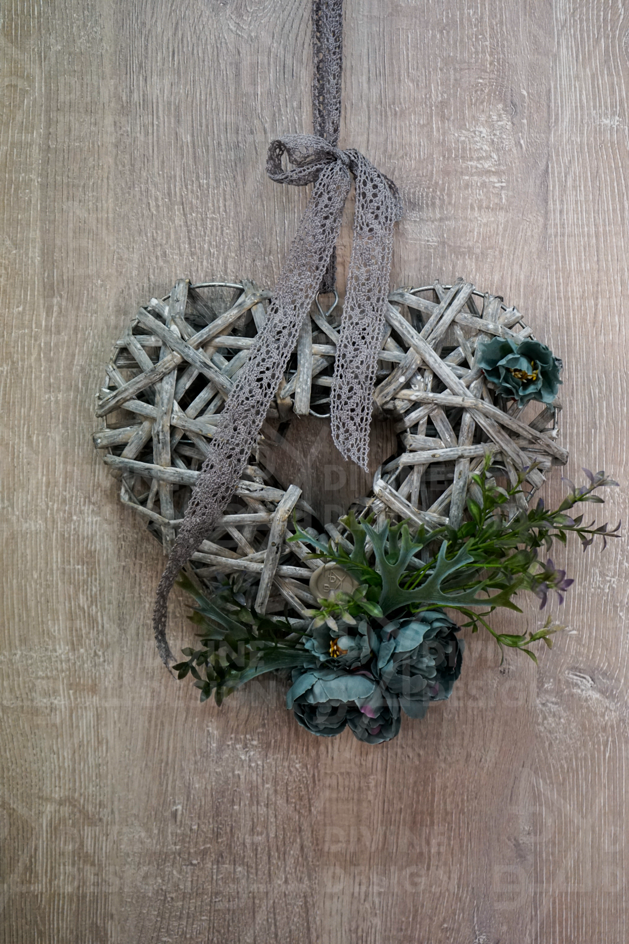 Romantické srdce je bohatě ozdobeno umělou parožnatkou a pečlivě zakomponovanou zelení, jež vnášejí do aranžmá přírodní atmosféru, klid a útulnost. K tomuto elegantnímu základu jsou přidány okouzlující pivoňky, které přinášejí jemnost, půvab a poetickou krásu do celkového vzhledu dekorace. Navíc je dekorace doplněna šedou krajkovou stuhou, jež působí jako finální elegantní akcent, který zvýrazňuje její sofistikovanost.