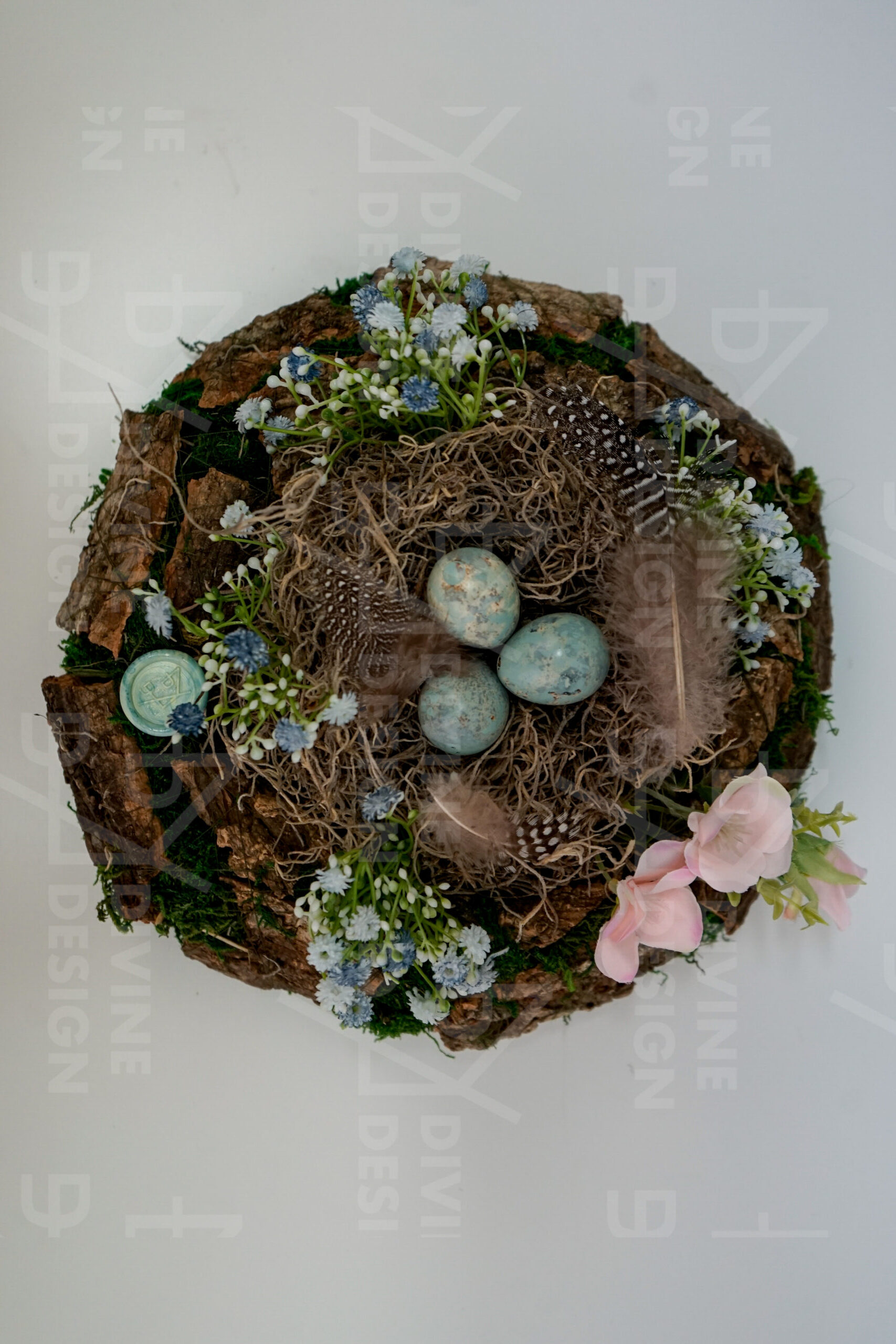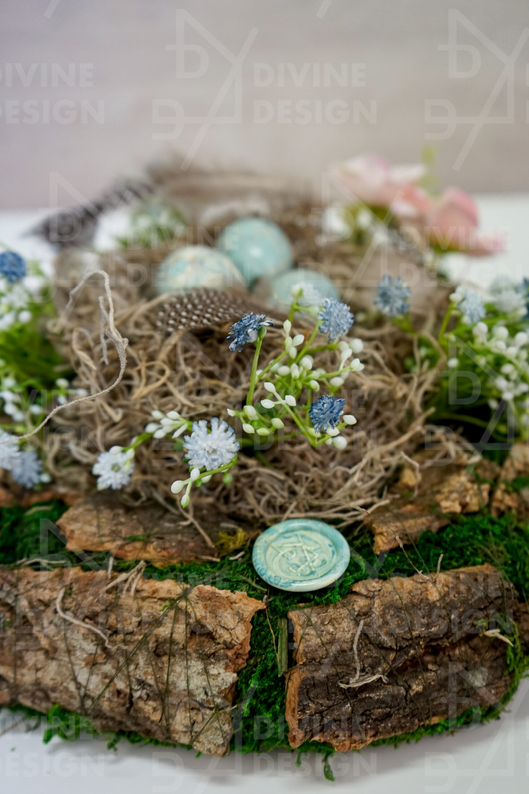 Velikonoční věnec na stůl – hnízdo s křepelčími vajíčky je ideální volbou pro slavnostní velikonoční stůl, nebo jako originální dekorace, která potěší vás i vaše hosty. Přineste do prostoru radost, jaro a styl s tímto atraktivním kouskem!