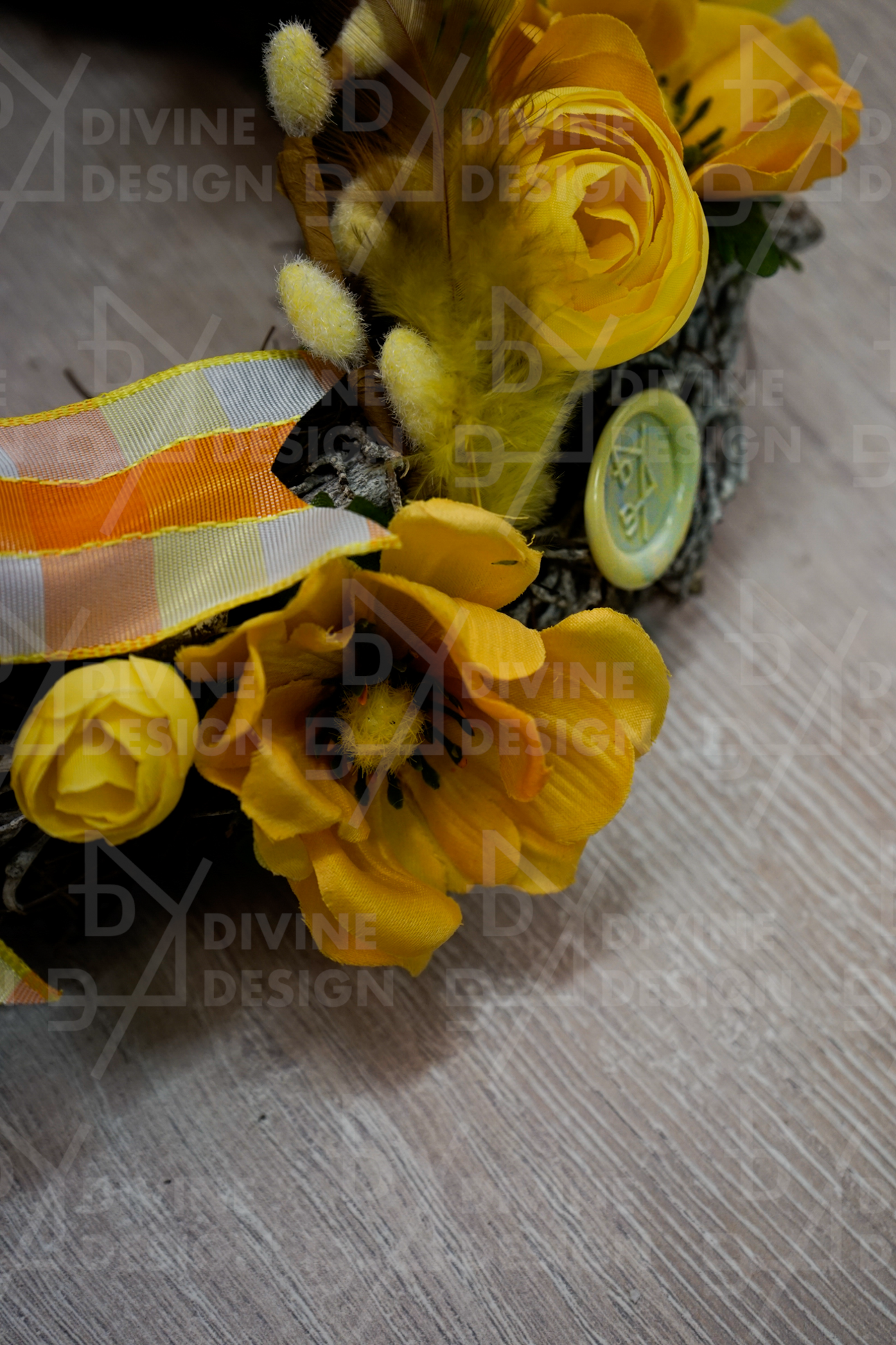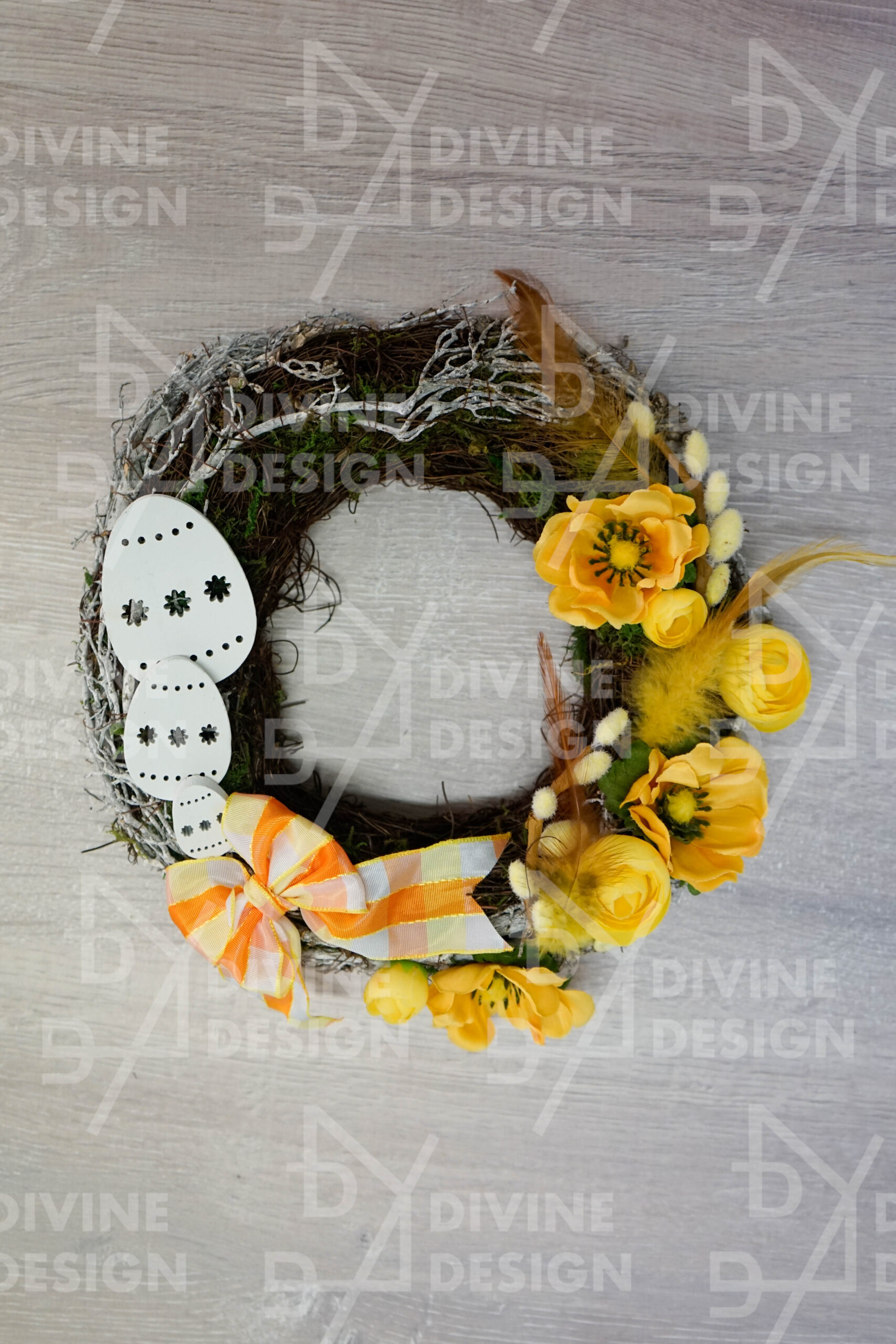 Velikonoční věnec na stůl – vajíčko žlutá je ideální jako středový dekorativní prvek pro slavnostní velikonoční stůl nebo jako veselá dekorace do vašeho obývacího pokoje. Přineste do prostoru jaro, radost a štěstí a udělejte tak každý sváteční okamžik výjimečným s tímto stylovým a atraktivním kouskem!