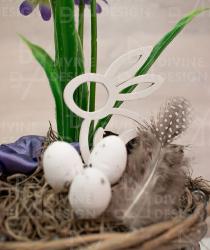 Základem tohoto velikonočního vypichovaného koše je bílý ratanový koš, který působí přirozeně, rustikálně a s nádechem přírodní krásy. Uvnitř se nachází proutěné hnízdo, jež symbolizuje nový začátek, plodnost a přirozenou eleganci. Ozdobeno je tilancií, která dodává aranžmá jemnou texturu a vzdušnost, a do kompozice jsou zakomponována roztomilá křepelčí vajíčka, jež přinášejí veselost a slavnostní jaro.