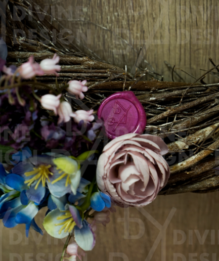 Jarní věnec na dveře – fialové pivoňky
