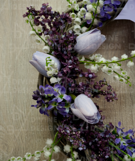 • Jarní věnec na dveře - tmavě fialové tulipány