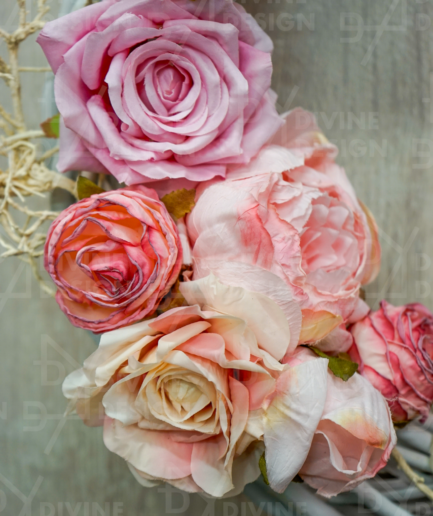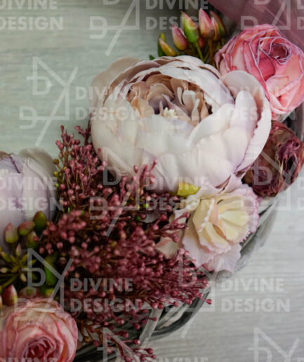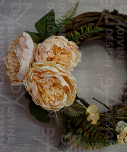 • Jarní věnec na dveře - pivoňky s větvičkou