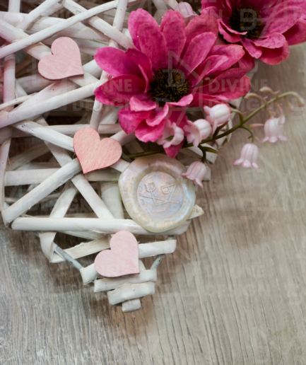 Romantické vypichované srdce – růžové pivoňky s růžemi