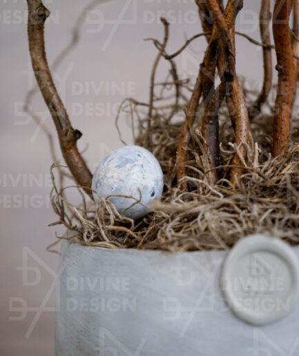 Velikonoční dekorace v ratanovém květináči – modrý hyacint